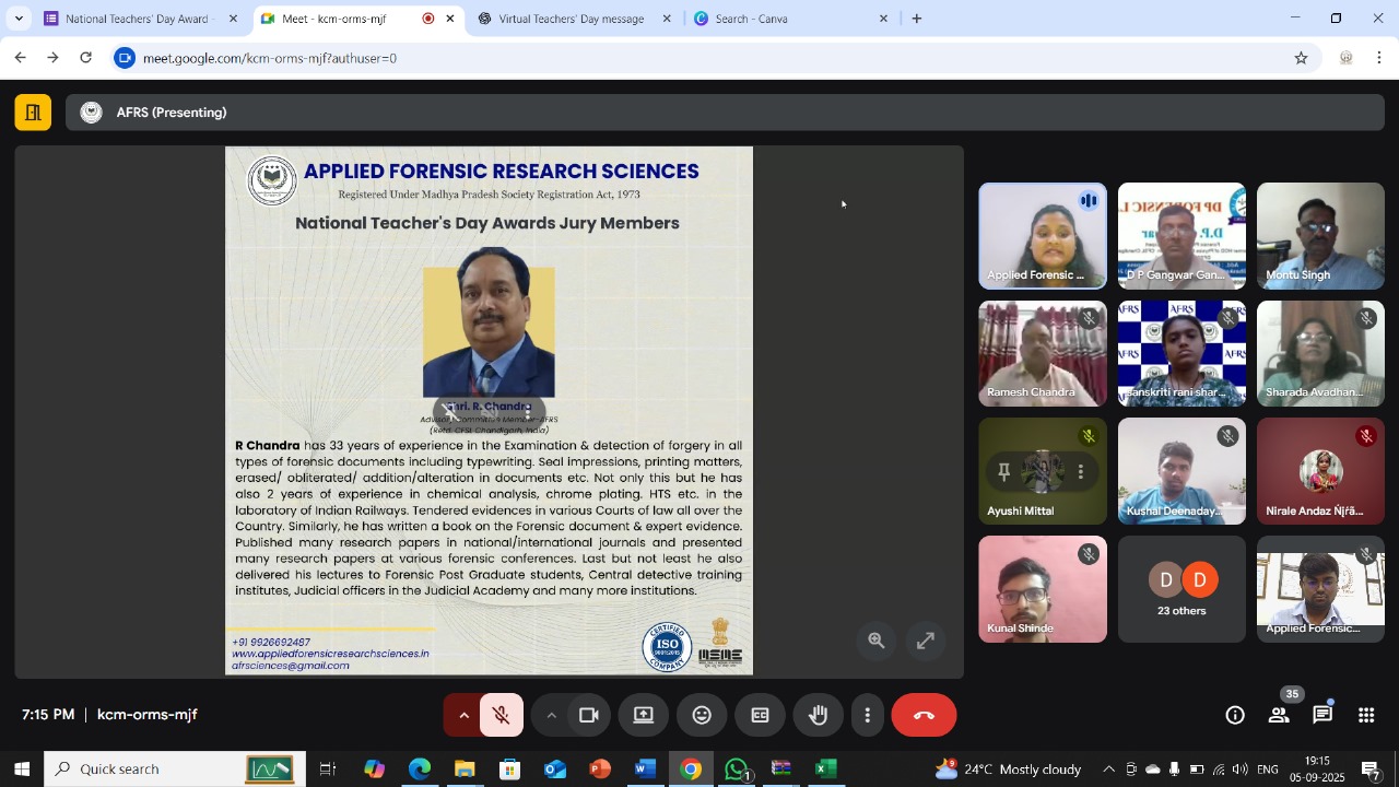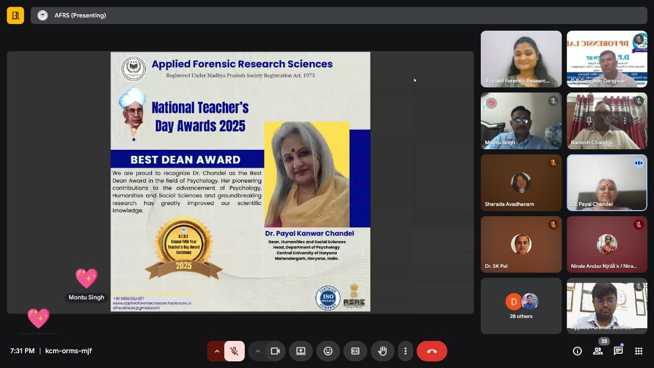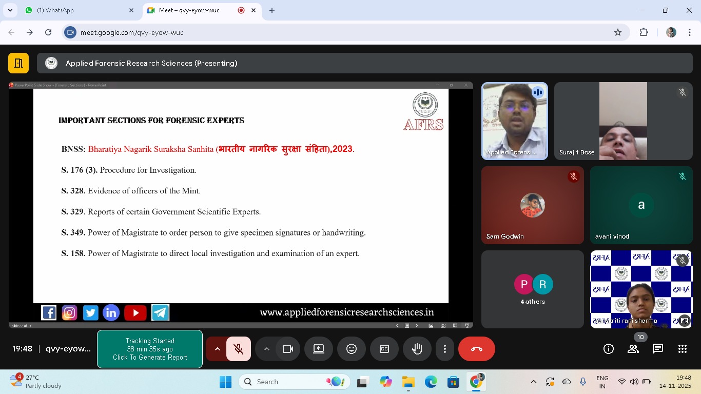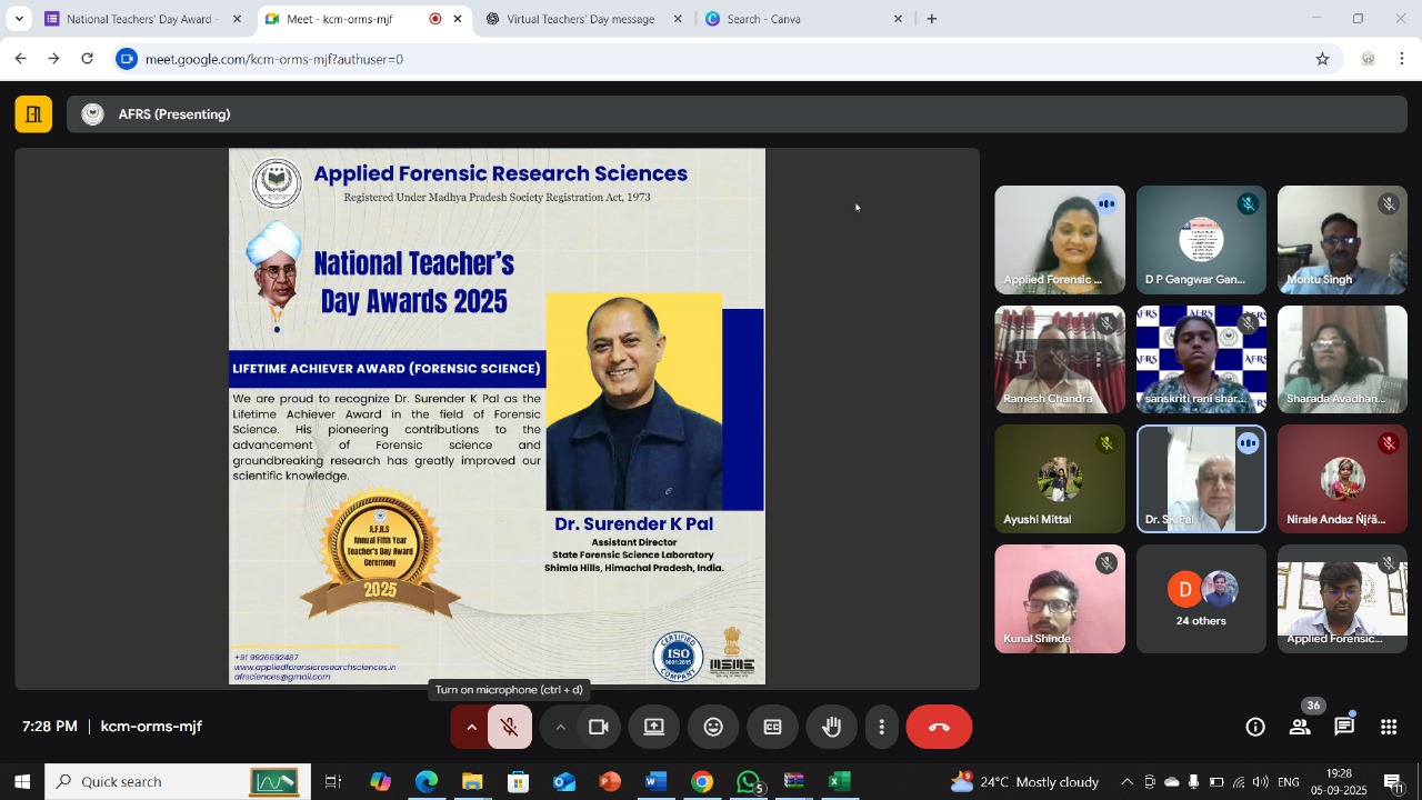 The Applied Forensic Research Sciences (AFRS) Institute is a multidisciplinary platform dedicated to advancing forensic education, research, and professional collaboration. We bring together students, educators, researchers, and practitioners from across the globe to promote innovation, ethical practice, and scientific excellence in the field of forensic sciences. AFRS Society serves as a bridge between academia and real-world applicationβempowering learners through research opportunities, specialized training, expert mentorship, and global networking. Our mission is to foster a community where knowledge inspires action, innovation drives discovery, and science supports justice
