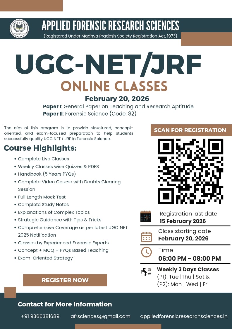 β¨ Your Gateway to Teaching, Research & JRF Success β¨ ππ©π©π₯π’ππ π π¨π«ππ§π¬π’π πππ¬πππ«ππ‘ πππ’ππ§πππ¬ (ππ ππ) proudly presents a structured, concept-oriented & exam-focused online preparation program for UGC-NET/JRF Forensic Science (Code 82).