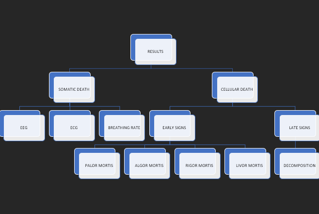 Somatic death particularly includes three stages. This theory is supported by two concepts Bichat’s tripod of life and Modern Concept.